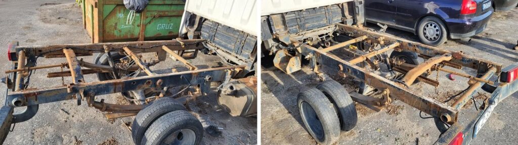 - Rama podwozia znacznie skorodowana z licznymi wżerami korozyjnymi;